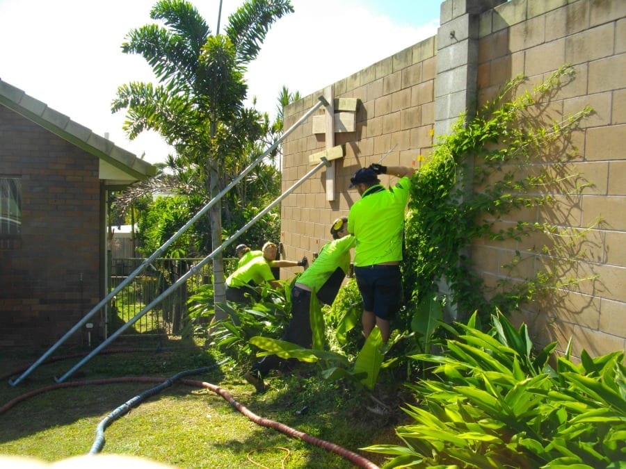 Acrow props in position prior & during the injection process. The Resinject team closely monitored the lift to ensure rotation of the wall so that it returned to its normal position or as near as possible.