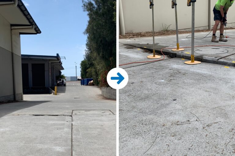Subsidence underneath your concrete can be quite obvious. At residential properties, it most commonly presents as a sunken driveway, and at commercial/industrial sites, it can cause cracked, uneven and sunken concrete slab flooring.